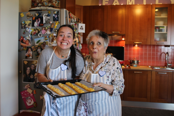 Hiii! I’m Rosaria Mastrodicasa, daughter of Annabella and mother of one of her 4 grandchildren. I spent a significant time of my childhood witnessing the art of cooking both my mom and my grandma. Believe me, they used to create real magic in our family kitchen. They often cooked all day long for the family, for fun or just to celebrate the weekend!